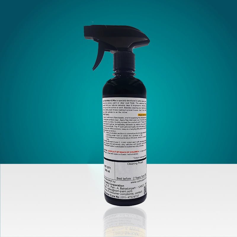 This product is specially developed keeping in view Customer’s need for a quick solution to clean his / her vehicle at many times when the domestic help is not available. Wash & Wax can safely clean your vehicle having any glossy paint or clear coat finish. The Water-less formula ensures that your vehicle remains clean & impressive, leaving a shiny layer of Wax coating to prevent loose dust from sticking again while the vehicle in on the move.
